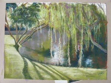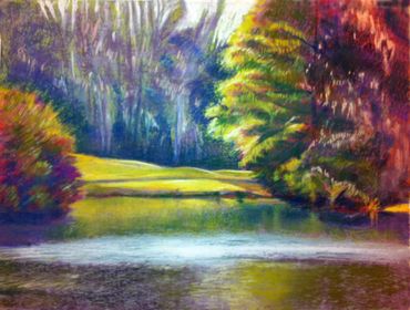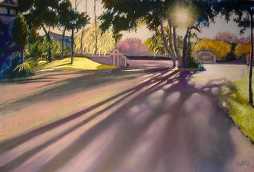 La plus part de ces paysages ont été inspirés par la beauté de la nature trouvée sur l’ile de Hilton Head en Caroline du sud. Le jeu du rétro éclairage avec les ombres allongées, permet les rayons du soleil de pénétrer furtivement entre les arbres.