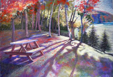 Most of these landscapes were inspired by the beautiful nature found on Hilton Head Island, South Carolina. They play on backlighting with elongated shadows with sunshine peaking through the trees.