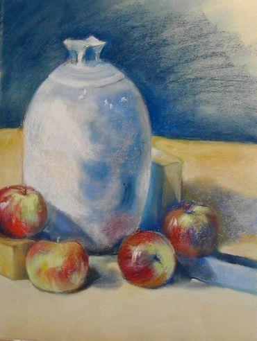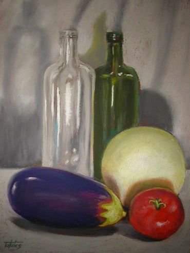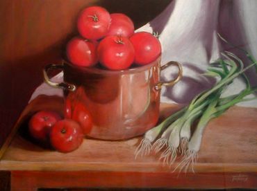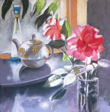 Play on light is very important to the artist, even when it comes to a still life. Reflections add a depth to the objects shown.